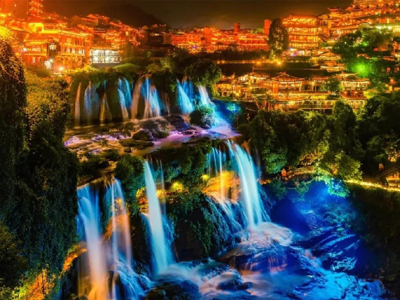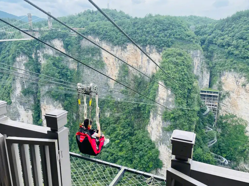 8시기상 - 황룡동굴로 이동(종유석 관광 -뱃놀이 포함)- 유리다리 대협곡(유리다리+엘리베이터+VR체험+유람선 포함) - 72기루(기이한 건물의 장가계 야경 랜드마크)