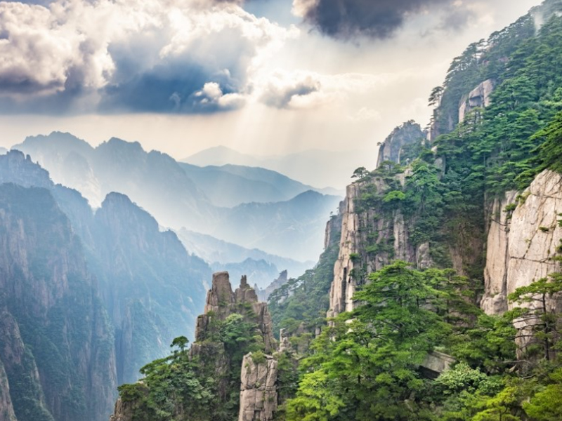 옥병케이블카탑승(산행5시간 - 백보운재,백운 - 중식후 모노레일 탑승 - 서해대협곡,배운정,비래석,광명정 - 몽필생화,시신봉 - 운곡케이블카 하산 - 황산으로 이동